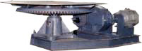 圆盘给料机为容积式计量的给料设备。它能均匀、连续地将物料喂送到下一道工序,并且能够承受较大的仓压。适用于喂送各种非粘性物料,不适用于流动性好的粉状物料。适合圆盘给料机喂送的物料有: 煤粉、水泥、熟料、石灰石、粘土等粉状、粒状或小块状物料。 KR型圆盘给料机为座式给料机,适用于空气净化程度要求不高的场合。