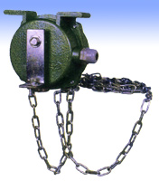 ●DLL-Ⅰ型料流检测装置采用下垂链球与物料接触的 检测方式。当胶带运 送物料时,物料推动球并带摆臂向一侧偏移,若偏移角度大于20°时,内部开关动作,输出一组开关信号。